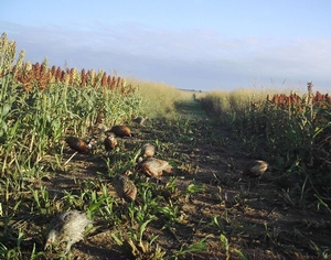 The goal is always to provide quality habitat for pheasants to use during all stages of their life cycle. Another benefit to our CRP fields is that every field has at least 2 sides that have pivot irrigated cropland. These fields are typically planted in either corn, beans, milo, or wheat. The constant moisture provided from the pivot irrigated fields provides moisture for the birds during the drier summer months, as well as some cooler vegetation to escape the summer heat. We believe that this is a key reason why our bird numbers remain so high even during the dryer years.